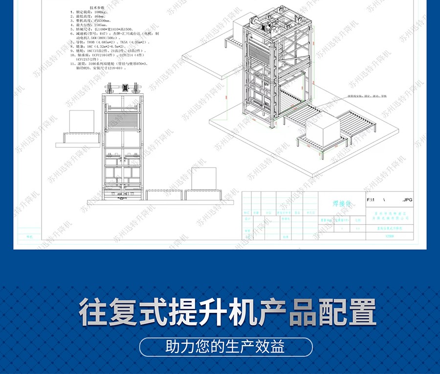 往復(fù)式提升機是由鏈條帶動,通過變頻調(diào)速控制電機,便提升轎廂上下往復(fù)運動.提升轎廂上配有傳動機構(gòu),以便被輸送物自動進入升降機的提升轎廂上。該類提升機具有控制先進,性能可靠,提升轎廂定位精度高等特點。